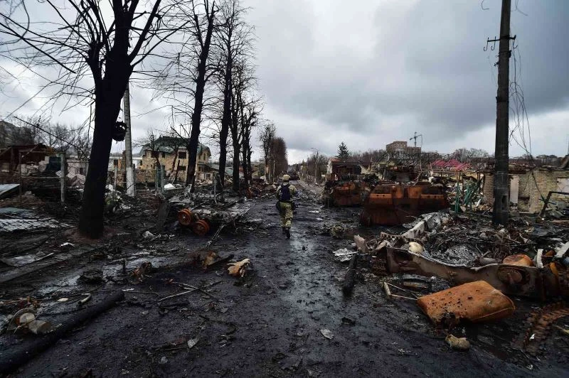 Ukrayna’nın Kiev bölgesinde yer alan Bucha şehri, savaşın en şiddetli yaşandığı noktalardan biri oldu. Şehirde Ukrayna güçleri tarafından pusuya düşürüldükten sonra insansız hava araçları tarafından imha edilen çok sayıda tank ve zırhlı araçtan oluşan Rus konvoyu görüntülendi. Rusların bölgeden çekilmesinin ardından görüntülenen noktada yaşanan patlamanın büyüklüğü ve tankların parçalarının sokağın her noktasına dağıldığı görüldü.