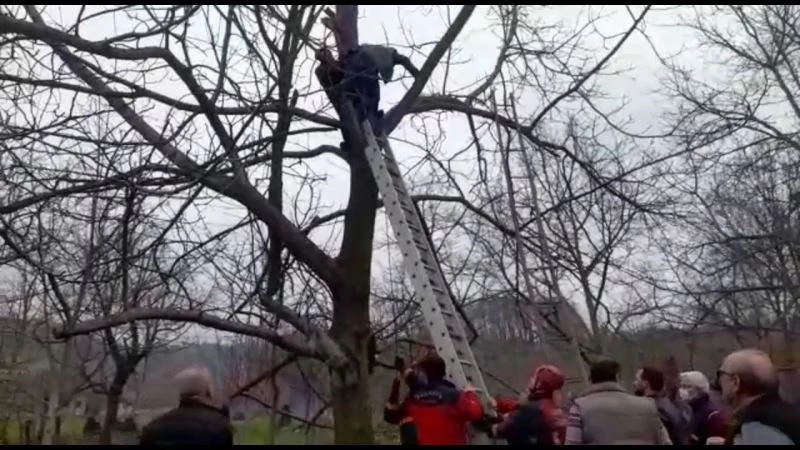 Sakarya’nın Sapanca ilçesinde budadığı ağacın dalı çarpan vatandaş fenalaşarak ağaçta mahsur kaldı. Ağaçta fenalaşan vatandaşın yardımına itfaiye ekipleri koştu.