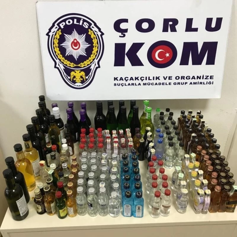 Tekirdağ İl Emniyet Müdürlüğü Kaçakçılık ve Organize Suçlarla Mücadele Şube Müdürlüğü Çorlu Grup Amirliği ekiplerince 5607 Sayılı Kanunla Mücadele kapsamında gümrük kaçacağı ve yapma içki üretimi yapan ve satan iş yerleri ile şahıslar hakkında yapılan çalışmalarda alınan mahkeme kararına istinaden Çorlu’da Zafer Mahallesi’nde faaliyet gösteren bir büfede yapılan aramalarda çeşitli maske ve özelliklerde toplam 213 adet gümrük kaçağı ele geçirildi. Kaçak içkilere el koyan polis ekipleri V.Y. adlı iş yeri sahibini de ifadesine başvurmak üzere Çorlu İlçe Emniyet Müdürlüğü’ne götürdü.