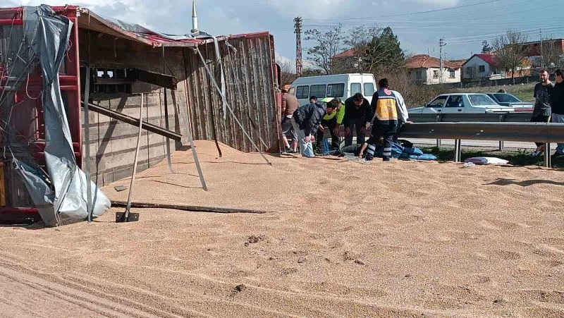 Devrilen kamyon ve yola saçılan buğday nedeni Ankara-Samsun karayolu bir süre trafiğe kapandı.