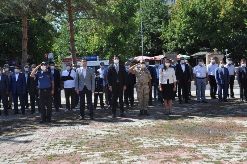 Korona virüs tedbirlerine uygun bir şekilde kaymakamlık binası önünde gerçekleştirilen tören, Atatürk Anıtı’na çelenk konulması ile başladı. Saygı duruşu ve İstiklal Marşı’nın okunmasının ardından Bulanık Askerlik Şubesi Başkan Vekili Personel Asteğmen Metin Karaman günün anlam ve önemini belirten konuşma yaptı.