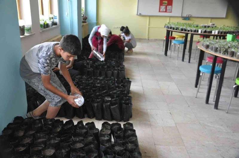MUŞ – Muş’un Bulanık Türk Telekom İmam Hatip İlkokulu ve Ortaokulu öğrencileri, geri dönüşüm malzemeleri ile 700 adet çam fidesi ve çiçek yetiştirdiler.
