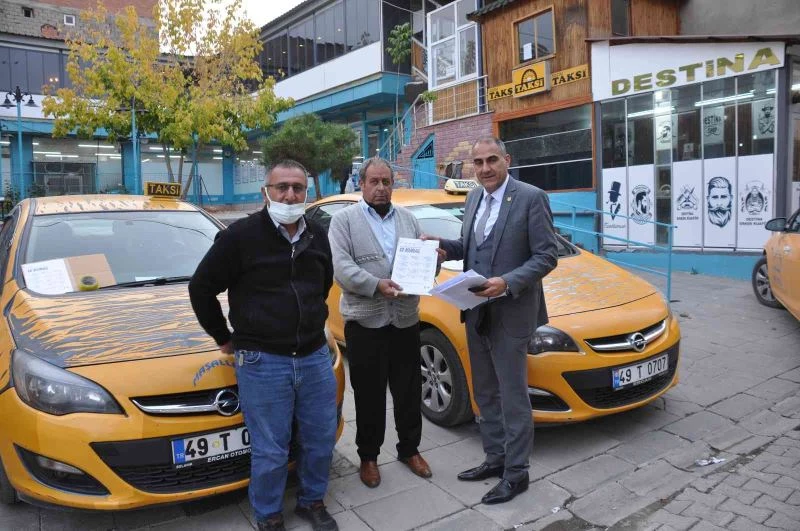 Sabah saatlerinde taksi duraklarını ziyaret eden Bulanık Şoförler Odası Başkanı Bahattin Taşkıran, 12 kuralın yer aldığı afişleri duraklara asmaları yönünde kendilerine teslim etti. Yolcuların görebileceği yerlere asılan ve ’Taksi şoförü kardeşimizin uyması gereken kurallar’ adı altında yazılan afişlerde, sürücülerin uyması gereken kurallar hatırlatılıyor.