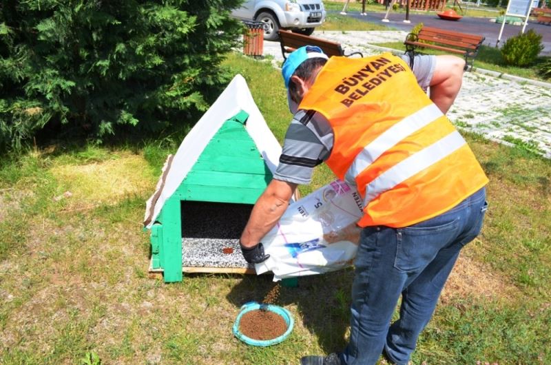 Bünyan Belediyesi, ilçe sınırları içerisinde aldığı korona virüs tedbirleri kapsamında sokak hayvanlarını unutmuyor.