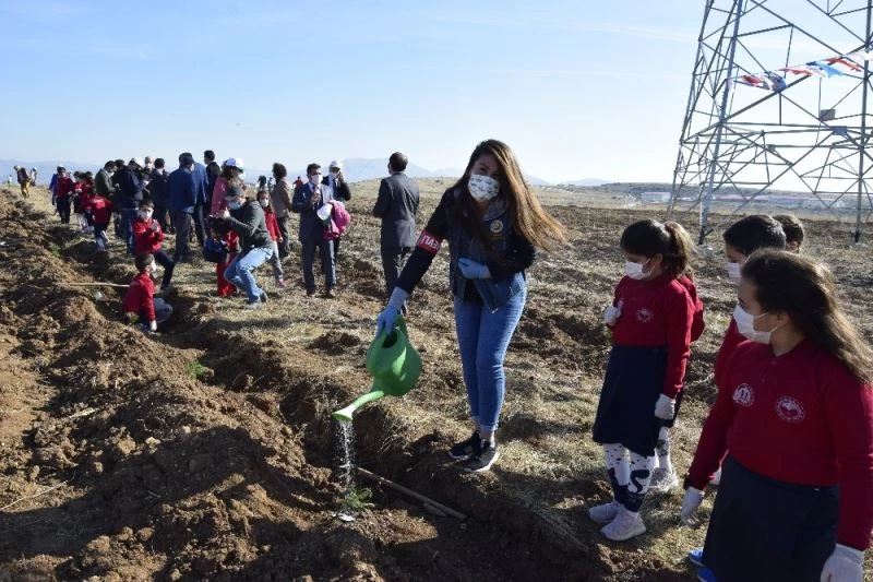 Konuşma sonrasında etkinliğe gelenler çam fidanlarını toprakla buluşturdu. Okul öğrencileri ise diktikleri fidanlara kendi isimliklerini astı.