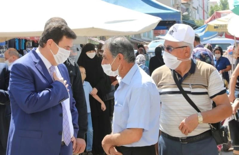Pazar girişlerinde zabıta ekipleri tarafından alınan önlemleri denetleyen Ali Arslantaş, girişte ateşlerin ölçüldüğünü, vatandaşların maskesiz içeriye alınmadığını gördü. Tedbirler hakkında bilgi alan Arslantaş, ardından çeşitli uyarılarda bulundu.