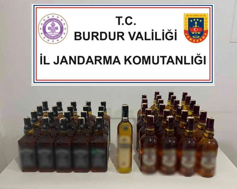 Burdur’da jandarma ekiplerinin yaptığı operasyonda 44 litre bandrolsüz kaçak içki ele geçirildi.