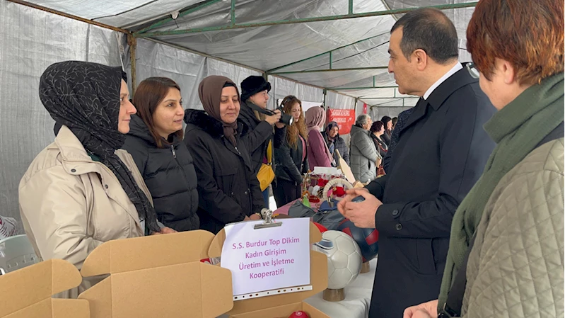 Burdur Valisi Türker Öksüz, Cumhuriyet Meydanı'nda kadınların açtığı stantlar gezdi.