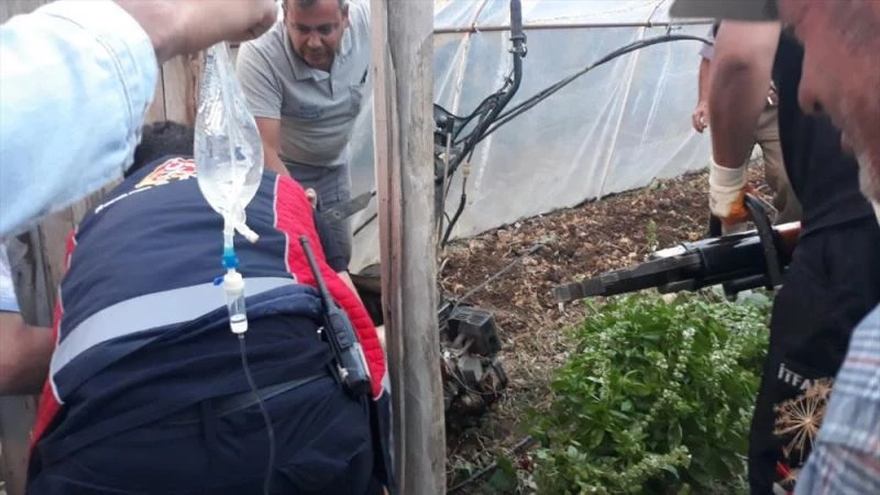 İncirdere köyünde bahçesini çapa makinesiyle çapalayan Halil Dernek, bacağını bir anda makineye kaptırdı.