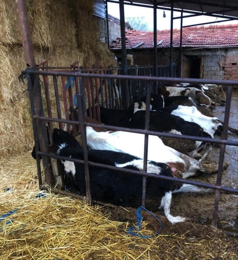 Alınan bilgiye göre, Mehmet Akay'a ait besihanede süt sağım makinesinden kaynaklandığı ileri sürülen arıza sonucu demir bariyerler arasından yem yiyen inekleri elektrik çarptı.