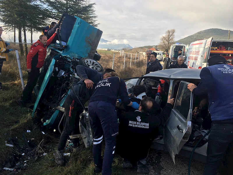 Kazada yaralanan sürücüler ile otomobillerdeki Hacer Y. ve Fatma B. sağlık ekiplerince Bucak Devlet Hastanesi'ne kaldırıldı.