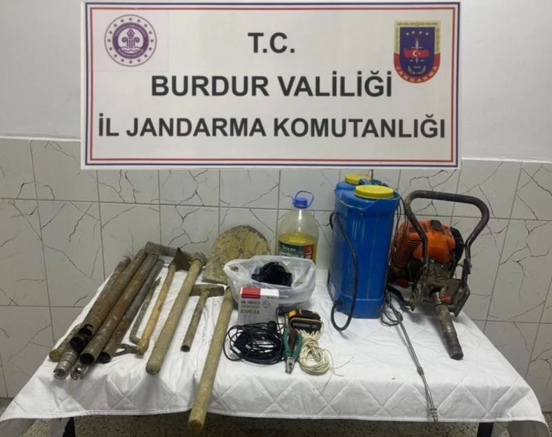Burdur’un Bucak ilçesinde kaçak kazı yapan 4 kişi suçüstü yakalandı.