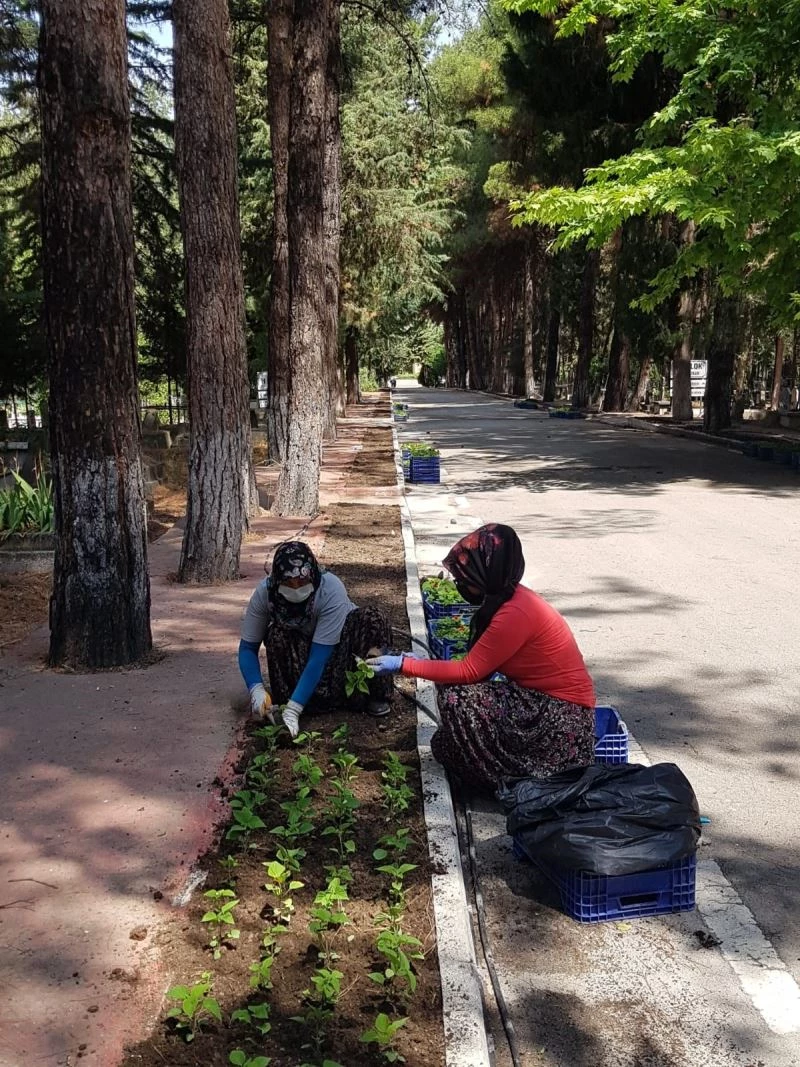 Burdur Belediyesi Park ve Bahçeler Müdürlüğü, parklarda, rejüjlerde ve mezarlıkta çiçeklendirme çalışmalarına hızla devam ediyor.