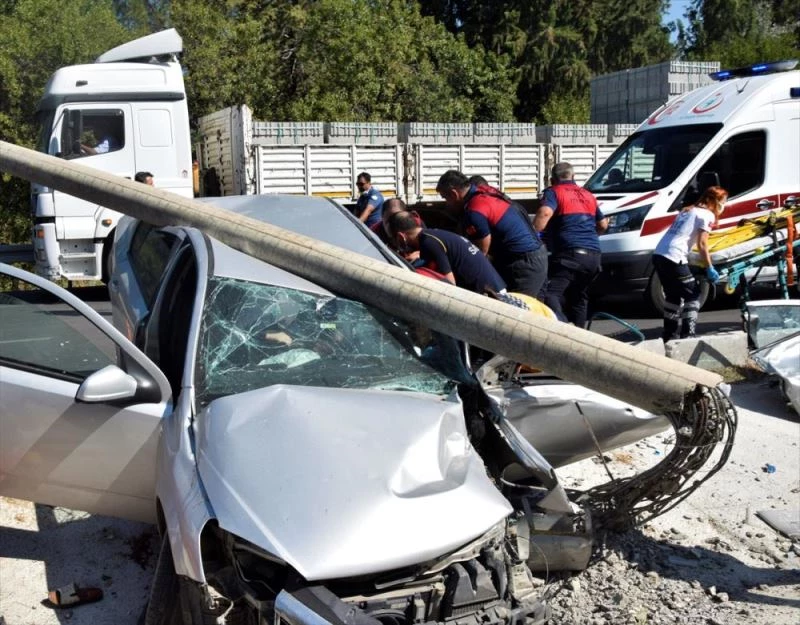 Burdur'da otomobil direğe çarptı: 3 yaralı
