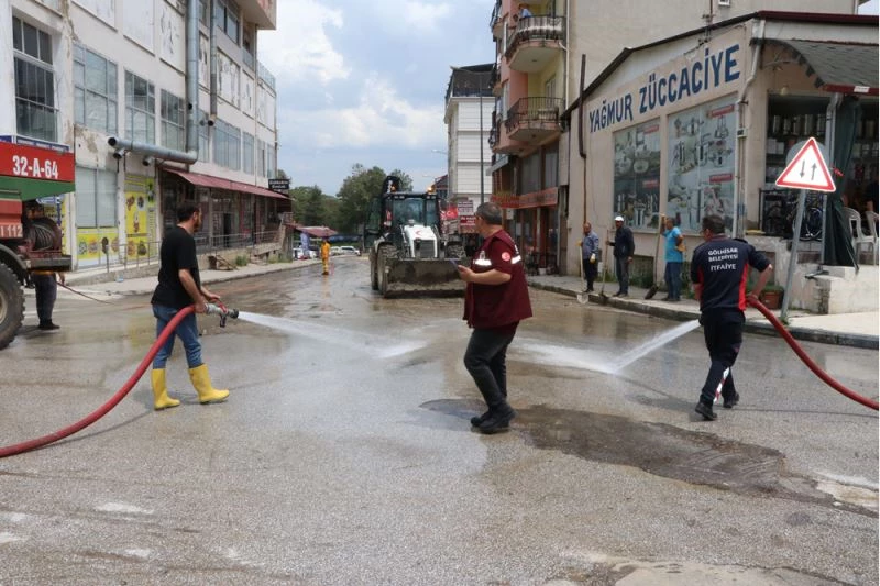 BURDUR - Burdur'da sağanağın neden olduğu selden etkilenen Gölhisar ilçesinde temizlik çalışması yapılıyor.