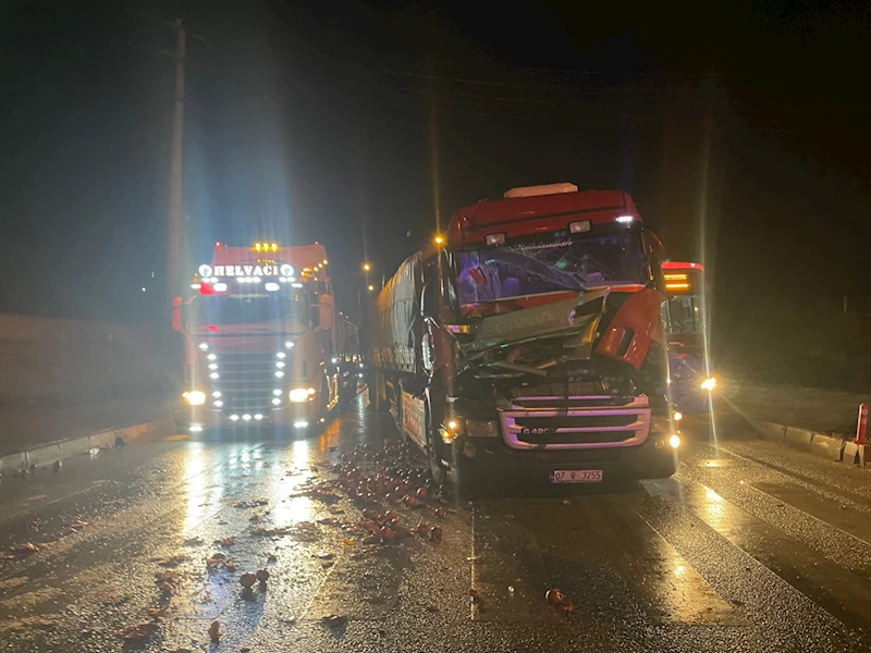 BURDUR - Burdur'da tır, nar yüklü kamyon ile özel halk otobüsüne çarptı.