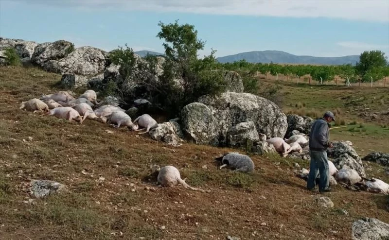 Manca köyü Armutlukırı mevkiinde, çoban İzzet Özer'in otlattığı koyunlara yıldırım isabet etti.