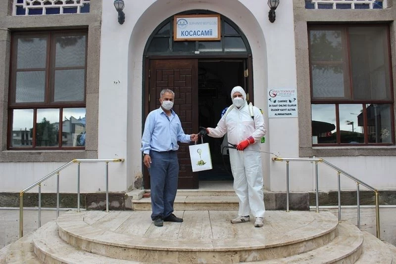 Burhaniye ilçesinde, tüm cami, cemevi ve ibadethaneler açılmadan önce temizlenerek dezenfekte edildi. Ayrıca her ibadethaneye sterilizasyon paketleri verildi.