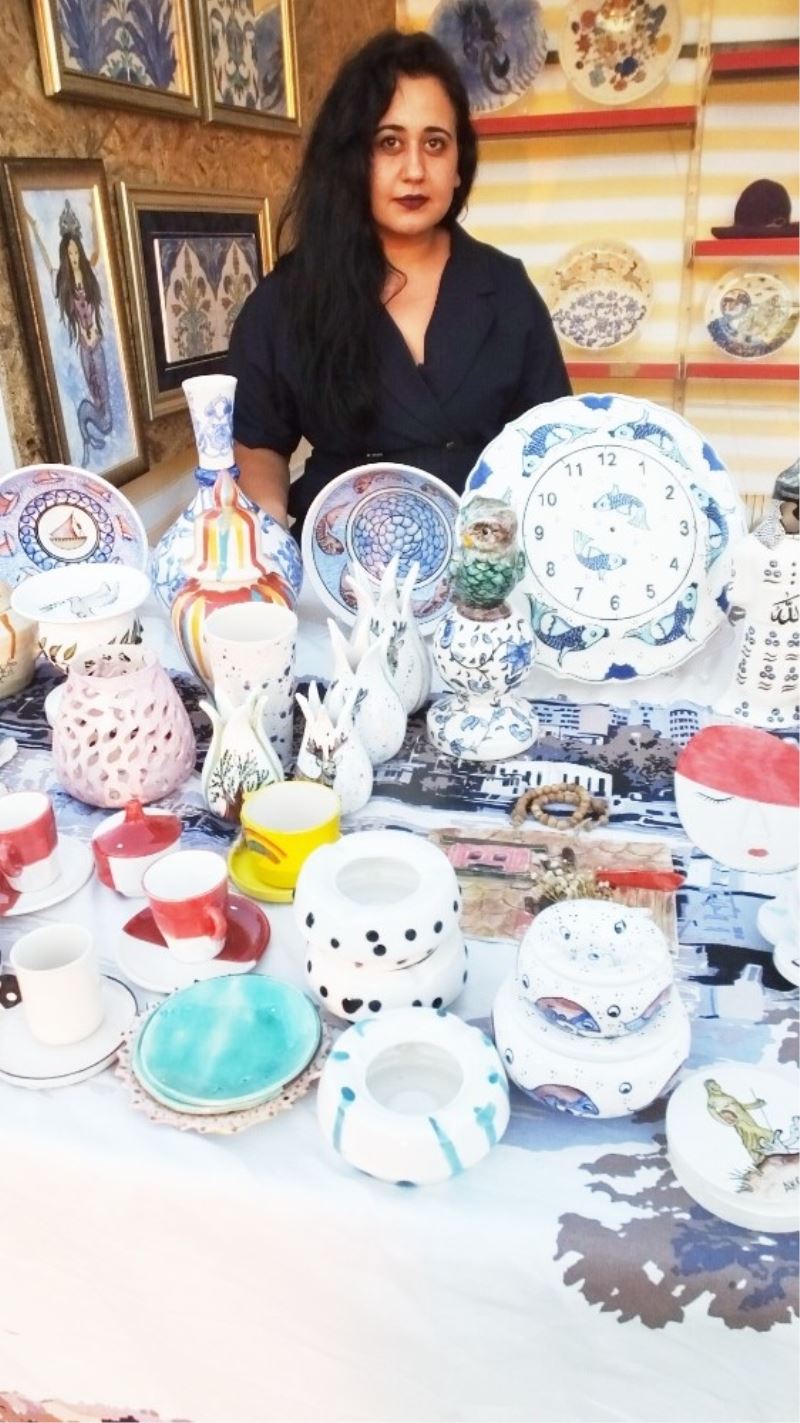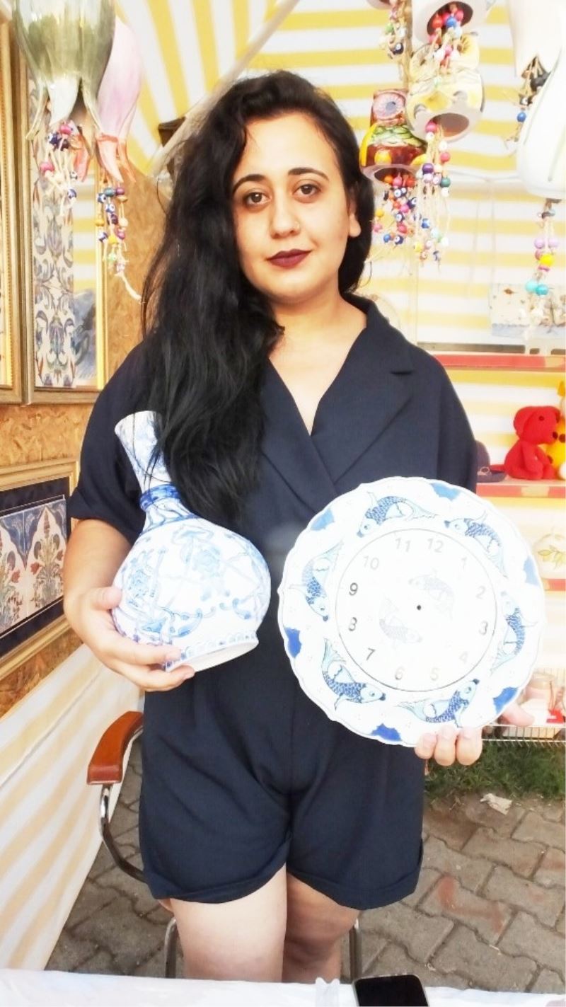 Sakarya Üniversitesi Sanat Tasarımı ve Mimarlık Fakültesi Geleneksel Türk Sanatları bölümünden önceki yıl mezun olan Elif Aygördü’nün, Kavakdibi Caddesinde kurduğu Huma Sanat Evi’nde hazırladığı birbirinden değerli çiniler ilgi gördü. Aygördü, okul bitirme projesi olan çiniyi de atölyesine dekor yaptı. Sanatını gençlere öğretmek istediğini anlatan Aygördü, “Önceki yıl okulumu bitirdim. Kavakdibi Caddesindeki atölyemde üretime devam ederken, bu sanatı öğrenmek isteyenlere de yardımcı oluyorum. Bu yıl İskele Gece Pazarı’nda açtığım stantta eserlerimi tanıtıyorum. Burada seramik vazolar, kahve fincanları, tabaklar vazolar ve kül tablalarını sergiliyorum. Eserlerim ilgi görüyor. Ancak, bu yıl sezon iyi değil” dedi.