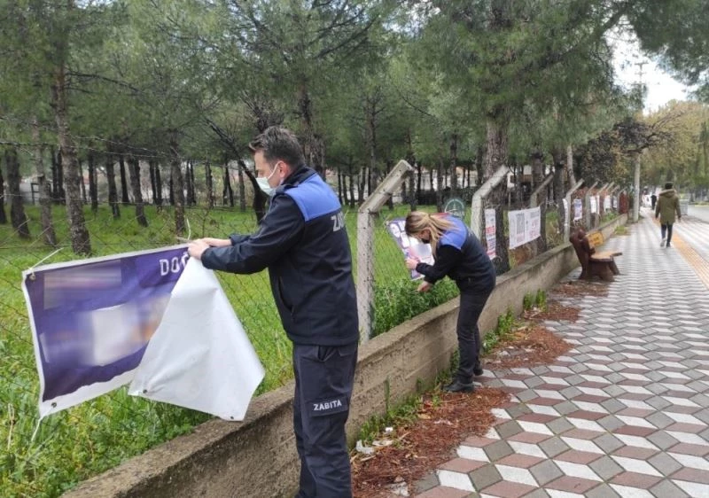 Burhaniye Belediyesi, son zamanlarda artan izinsiz afiş ve reklam faaliyetlerine “Dur” dedi. Burhaniye Belediyesi Zabıta Müdürlüğü ekiplerince yapılan çalışma ile ilçede çevre ve görüntü kirliliğine neden olan izinsiz asılan reklam afişleri kaldırıldı.
