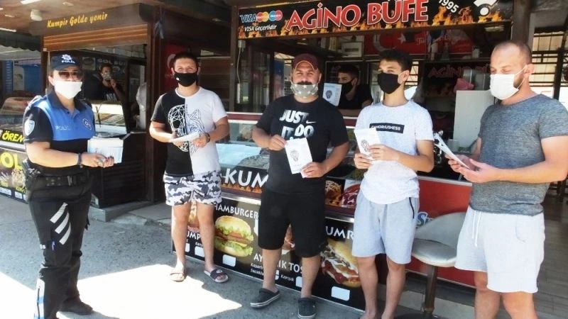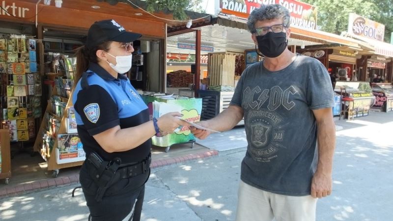 Burhaniye’de kadın polisler Ören sahilinde broşür dağıttı