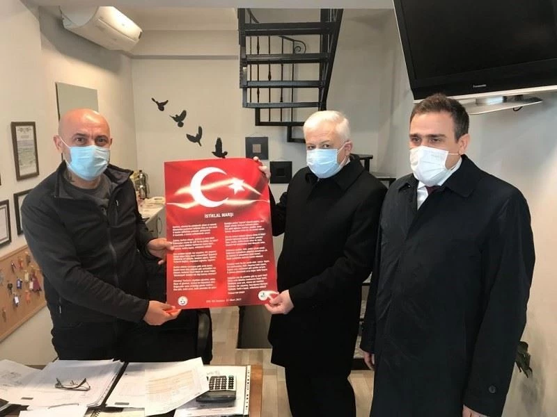 Kaymakam İlyas Memiş, Başkan Deveciler ile yaptığı ziyaretler sırasında vatandaşlarla sohbet etti. Kaymakam Memiş, “İstiklal Marşı, kurtuluş savaşındaki o büyük mücadeleyi bizlere en iyi şekilde aktaran, vatanın bağımsızlığı ve birlik beraberliğimizi en güzel şekilde ifade eden bir metindir. Bu mücadelenin anısının gelecek kuşaklara en iyi şekilde aktarılması için bu çalışmayı yapıyoruz. Esnaflarımızın yapılan tabloyu çerçeveletip işyerlerinde asmalarını tavsiye ediyorum” dedi.