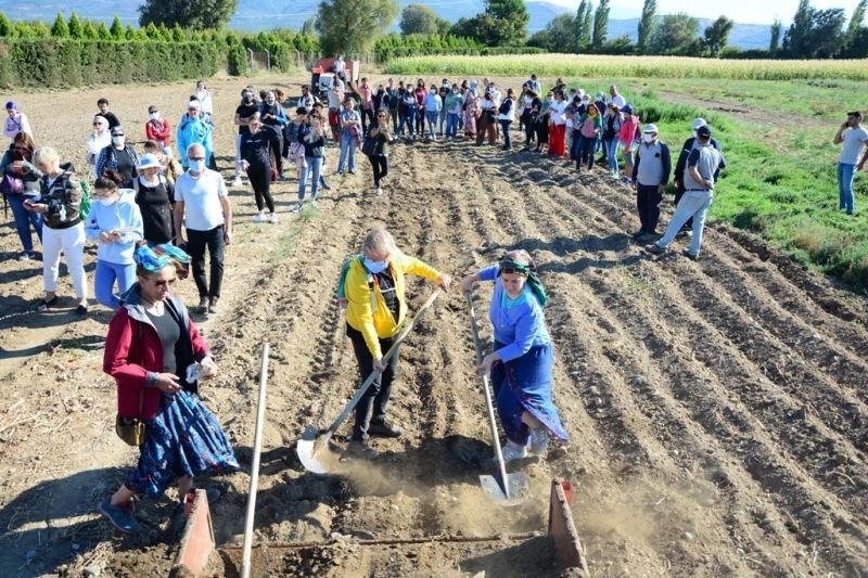 Burhaniye’de kursiyerler tohum ekti ve ıtır hasadı yaptı