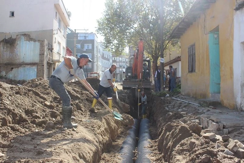 Burhaniye Belediyesi yağmursuyu altyapı borularını yeniliyor. Burhaniye’de uzun yıllar önce döşenmiş yağmursuyu alt yapı boruları Belediye tarafından etap etap yenilenmeye başlandı.