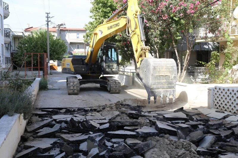 Ekiplerin bozuk olan asfalt yolları söküm çalışmaları devam ederken Öğretmenler Mahallesi 1017 Sokak komple asfalttan arındırılarak parke taş döşemeye başlayacak.