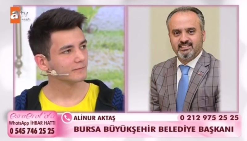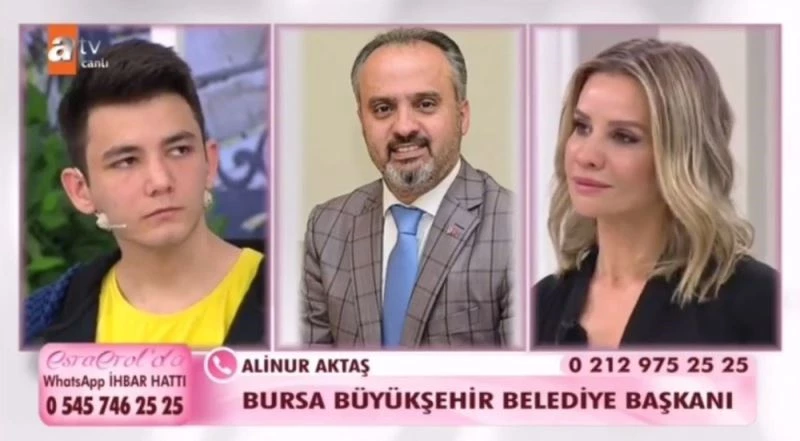 Bursa’da 13 yaşına kadar yetiştirme yurdunda yaşayan Uğurcan Celepoğlu, biyolojik babasını bulmak için Esra Erol’un kapısını çalıp yardım istedi. Programın canlı yayın konuğu olan ve annesinin sözleriyle hayatının şokunu yaşayan 20 yaşındaki Celepoğlu’na Bursa Büyükşehir Belediye Başkanı Alinur Aktaş sahip çıktı.