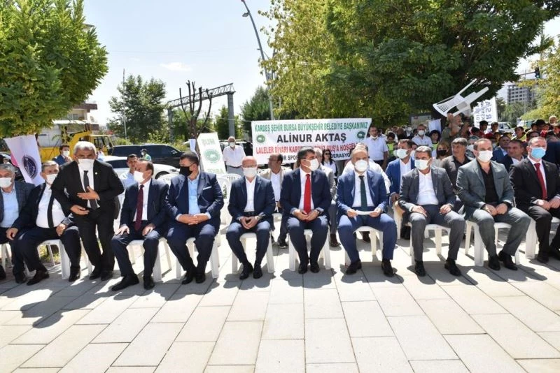 Millet Bahçesinde düzenlenen malzeme dağıtım töreninde konuşan Bursa Büyükşehir Belediye Başkanı Alinur Aktaş, Muş’un Bursa’dan, Bursa’nın da Muş’tan farkı olmadığını söyledi. Gençler ve çocukların hayata daha iyi hazırlanabilmesi için Bursa-Muş Kardeşliği Gençlik Merkezi binasının temelini attıklarını müjdeleyen Başkan Aktaş, “İnşallah bittikten sonra göreceksiniz o gençlik merkezi bütün Muş’un sokaklarına, Muş’un ekonomisine, Muş’un sosyal hayatına dalga dalga yayılacak. Bu çorbada bizim de tuzumuz olursa ne mutlu bizlere. Kadim şehir Bursa’dan, Osmanlı’yı kuran şehir Bursa’dan bu bölgelere nasıl güzellikler katabiliriz hep onun hesabı ve kitabı içerisinde olacağız” dedi.