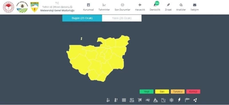 Meteoroloji Genel Müdürlüğünden 26 Ocak Salı günü 11.00’den 23.00’e kadar sürmesi tahmin edilen fırtına için yapılan açıklamada şu ifadelere yer verildi: