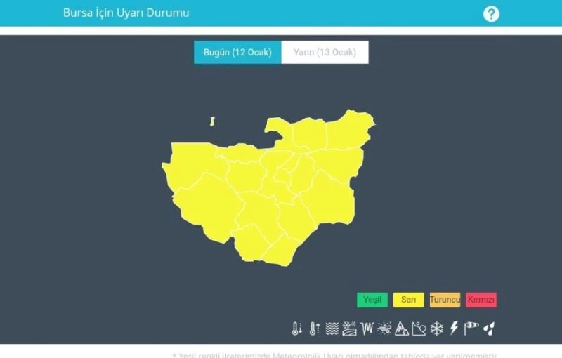 Meteoroloji Genel Müdürlüğü, Bursa’da ulaşımda aksamalar, soba ve doğalgaz kaynaklı zehirlenmeler, çatı uçması gibi olumsuzluklara karşı dikkatli ve tedbirli olunması konusunda uyardı.