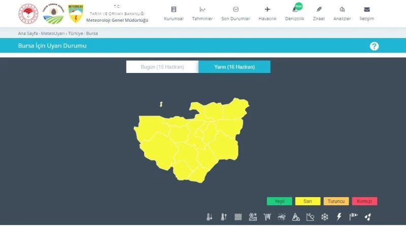 Meteoroloji Genel Müdürlüğü’nden Bursa için sarı uyarı yapıldı.
