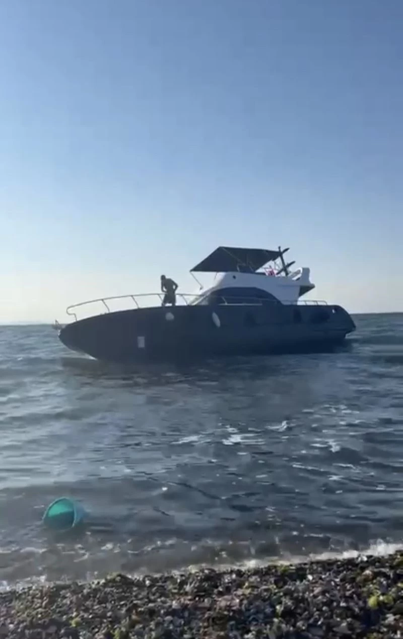 Bursa’nın Mudanya ilçesi Kapanca sahilinde milyonluk lüks yat karaya oturdu. Batma tehlikesi olan yat, yan durarak öylece kaldı. Vinç ve kepçe yardımıyla kurtarılan yatta büyük maddi hasar meydana geldi. O anlar sahilde bulunan bir vatandaşın cep telefon kamerasına yansıdı.