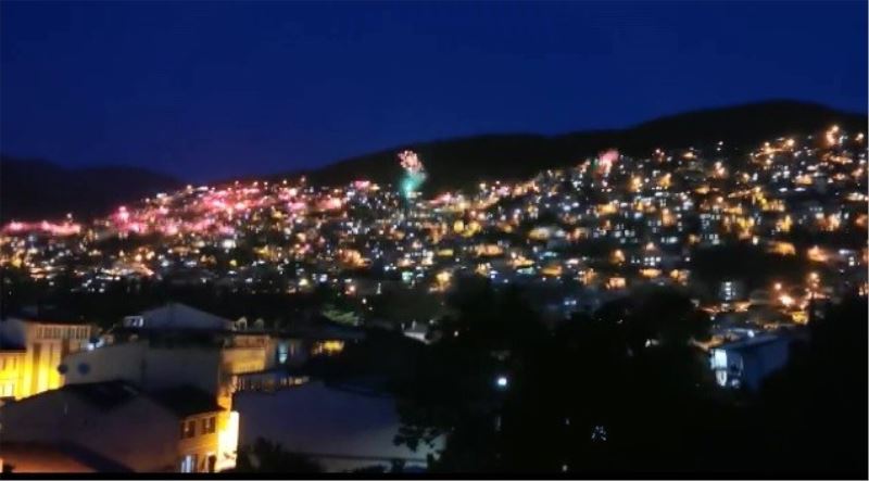 Bursa’da hem Kadir Gecesi’ni eda edip hem de 19 Mayıs’ı kutlayan gençler gece yarısı havai fişek ve meşalelerle adeta geceyi aydınlattı.