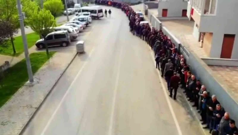 Bursa’nın İnegöl ilçesi Cerrah Mahallesi halkının bayramlaşmasında yaklaşık 1 kilometrelik kuyruk oluştu.