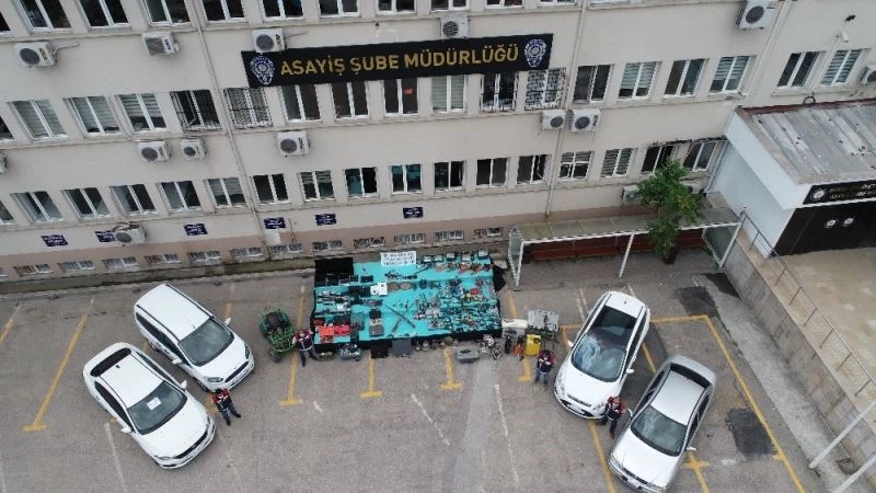 Şüphelilerin emniyetteki işlemleri devam ederken, ele geçirilen çalıntı malzeme ve araçlar emniyetin bahçesinde sergilendi.