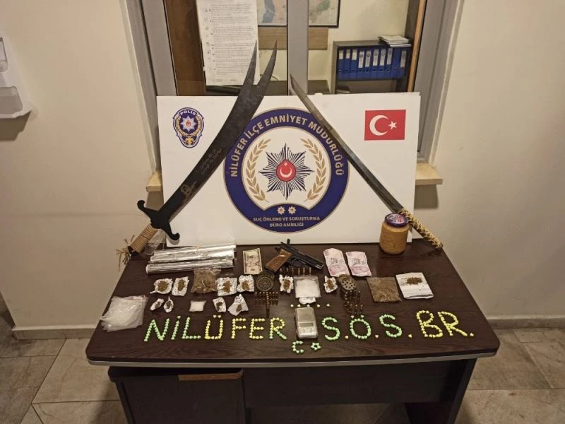 Bursa’da 2 kılıç ve yüklü miktarda uyuşturucu ele geçirildi