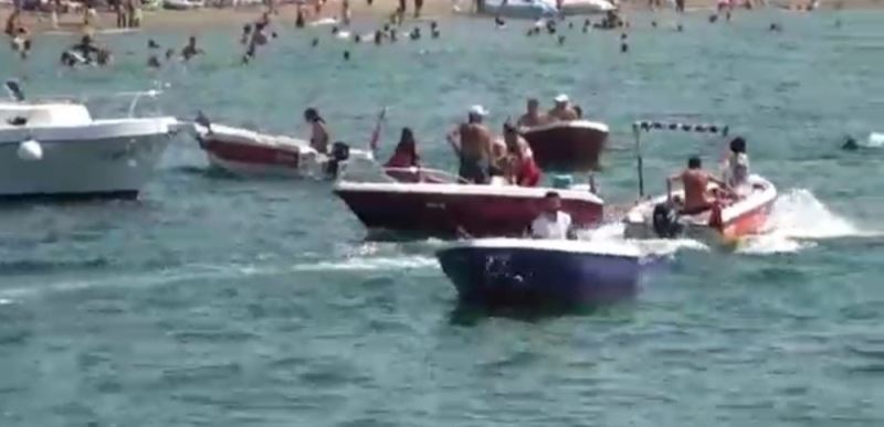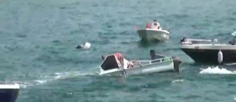 Bursa’da 30 Ağustos Zafer Bayramını denizde teknelerle kutladıkları sırada teknelerden biri su almaya başlayınca alabora oldu. Teknede bulunan bir kişi suya gömülürken o anlar kameralara anbean yansıdı.