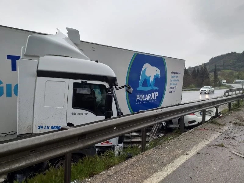 Kazada dört araçta hasar oluşurken, tır ve otomobil de kaza ile birlikte bariyerlerden yol kenarına düştü. Kazada herhangi bir yaralanma meydana gelmedi. Kaza sonrasında olay yerine gelen jandarma Trafik ekipleri, kontrollü olarak trafiğin devam etmesini sağladı.