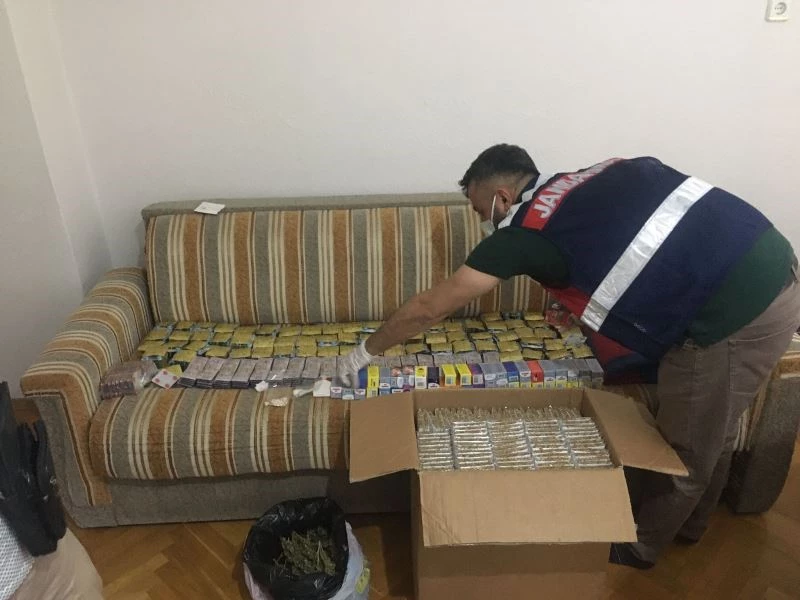 Bursa İl Jandarma Komutanlığı İstihbarat Şube Müdürlüğü ve Osmangazi İlçe Jandarma Komutanlığı ekipleri tarafından takibe alınan 70 yaşındaki H.Ö.’nün evine baskın yapıldı. İkamette yapılan aramalarda 500 gram kubar, 4 bin 387 adet uyuşturucu ve uyarıcı hap, 50 adet captagon uyuşturucu hap, 81 bin 740 adet tütün doldurulmuş makaron, 10 kilo kıyılmış tütün, 12 adet bandrolsüz içki, 2 gram Afgan macunu, 1 adet hassas terazi, bin adet şeffaf kilitli poşet ve 10 bin 500 adet boş makaron ele geçirildi. Olayla ilgili adlî tahkikatı tamamlanan şüpheli, H.Ö. sevk edildiği adlî makamlarca tutuklanarak Bursa E Tipi Ceza İnfaz Kurumuna gönderildi.