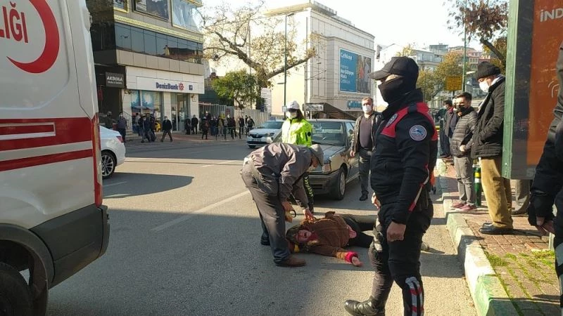 Bursa’da otomobilin çarptığı yaşlı kadın acılar içerisinde bağırırken eşi ve çarptığı otomobil sürücüsü tarafından teselli edildi.