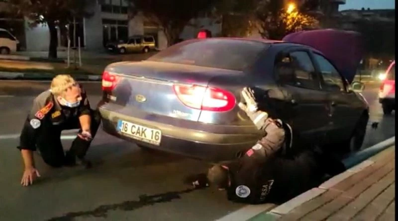 Bursa’da aracın motoruna sıkışan kedi 1 saat sonra kurtarıldı