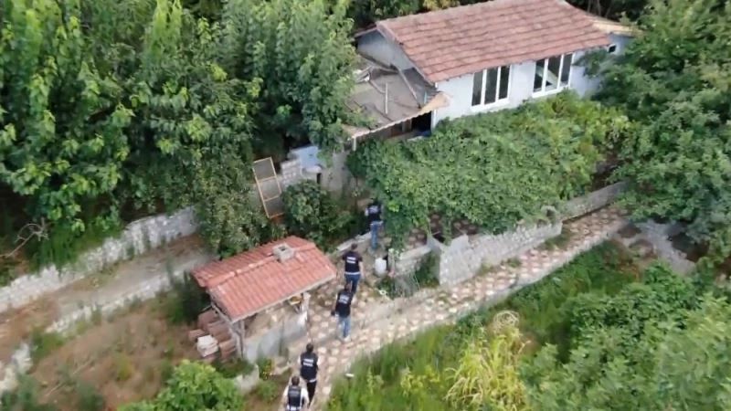 Ormanlık alanda bulunan ikamete yapılan operasyon saniye saniye kaydedildi. Ormanlık alanda ikamete yaklaşan ve eve giren ekipler, drone ile anbean kaydedildi. Ormanlık alana ekili esrarları da bulan ekiplerin o görüntüleri izleyenlere adeta belgesel tadı verdi.