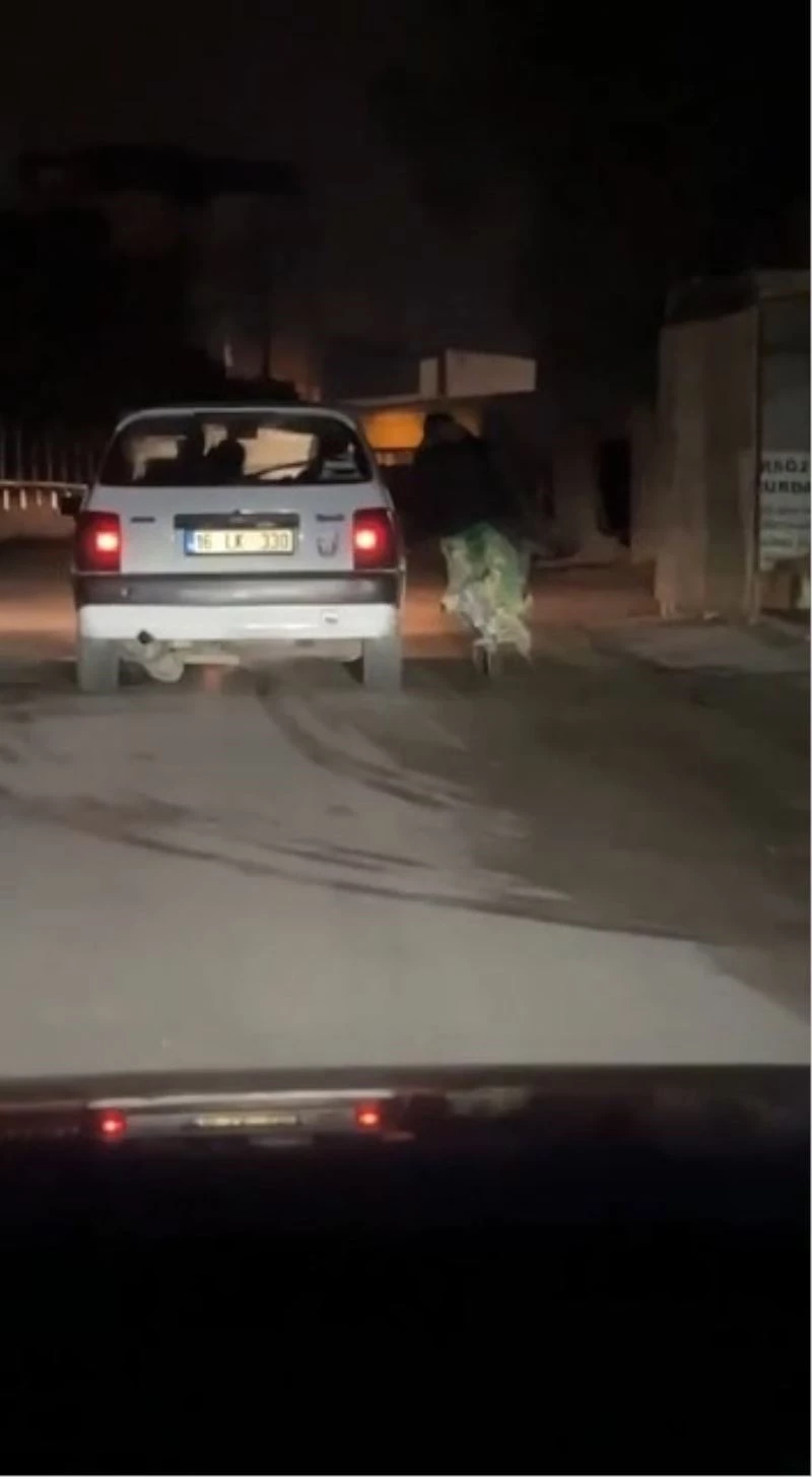 Olay, merkez Osmangaz ilçesi Veysel Karani mahallesinde meydana geldi. Edinilen bilgiye göre, bisikletli adam, otomobile tutunarak seyahat etti. Bu tehlikeli yolculuğu görenlerin yüreği ağzına geldi. Bir süre canını hiçe sayarak seyahat eden adam, arabayı bıraktıktan sonra hızlıca gözden kayboldu. Bu tehlikeli anlar cep telefon kamerasına saniye saniye yansıdı.