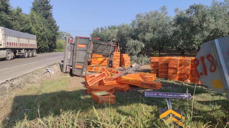 Kaza, sabaha karşı saat 05.00 sıralarında Orhangazi-İznik Karayolu Keramet Ilıca kavşağında meydana geldi. Alınan bilgilere göre, Bilecik’in Osmaneli ilçesinden yüklediği 5 bin adet canlı tavuğu Bandırma’ya götürmek üzere yola çıkan Bora V. idaresindeki 10 ACH 262 plakalı tır kontrolden çıkarak devrildi. Kazada tır kasasında yüklü olan canlı tavuklar kafesleri ile birlikte etrafa saçıldı. Ölen ya da yaralananın olmadığı kazada etrafa saçılan kafes içindeki tavuklar olay yerine çağrılan bir başka tıra aktarıldı. Çok sayıda tavuğun da telef olduğu kazayla ilgili inceleme başlatıldı.