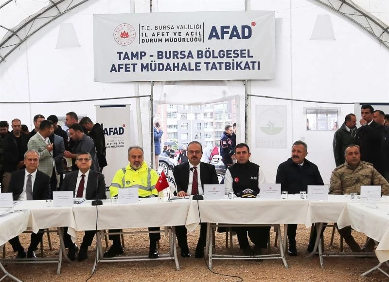 Tatbikatın gerçekleştiği alanı ziyaret eden Bursa Valisi Yakup Canbolat, ekiplerin görev aldığı çadırları tek tek gezerek bilgi aldı. Tatbikatın gece de süreceği belirtildi.