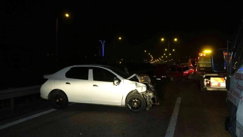 Bursa’da İstanbul-Bursa-İzmir otoyolunda yaşanan kazada direksiyon hakimiyetini kaybeden otomobil sürücüsü bariyerlere çarptı. Arkasından gelen otomobilinde duramayarak öndeki otomobil ile çarpıştı.