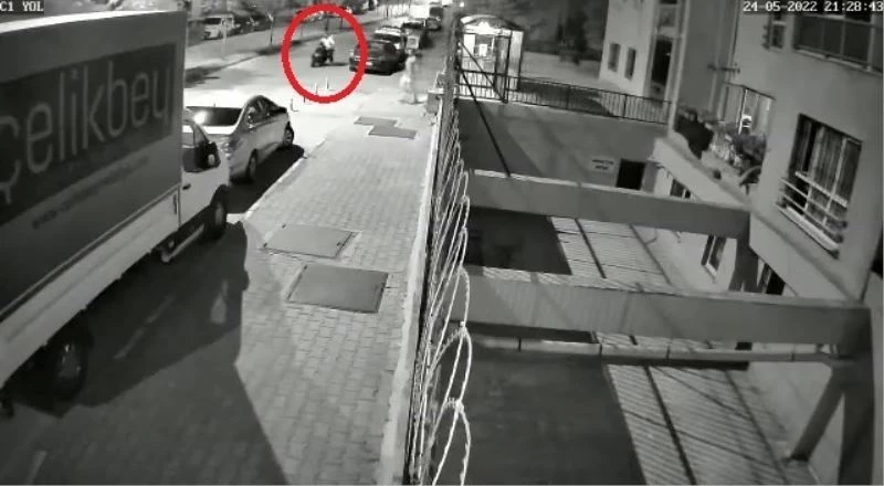 Kapıya geldiğinde motosikletini göremeyen araç sahibi 112 Acil Çağrı Merkezini arayarak ihbarda bulundu. Polis ekipleri sitenin güvenlik kameralarını inceledikten sonra hırsızı yakalamak için çalışma başlattı.
